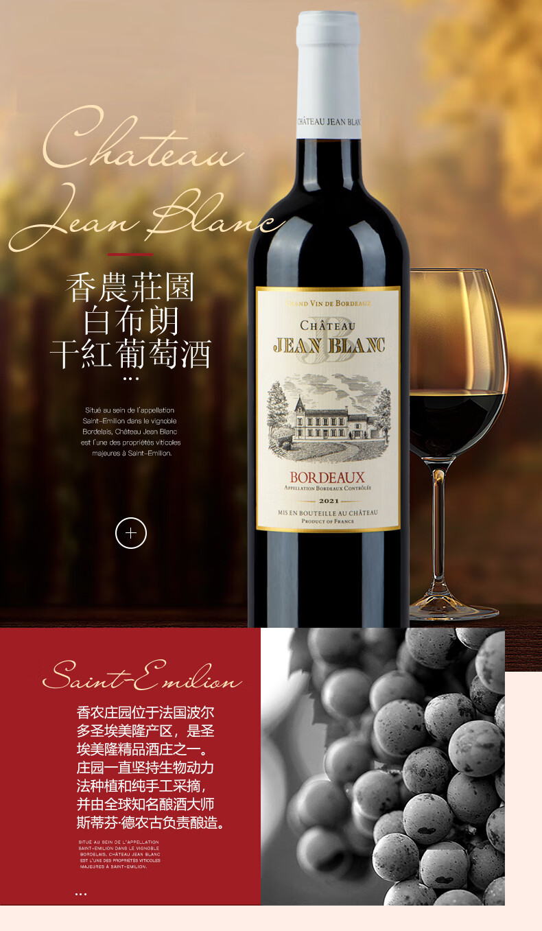 商品名称: CHATEAU LOUIS【香农庄园】2021年白布朗干红葡萄酒法国波尔多原瓶原装进口红酒 750ml单支装红酒