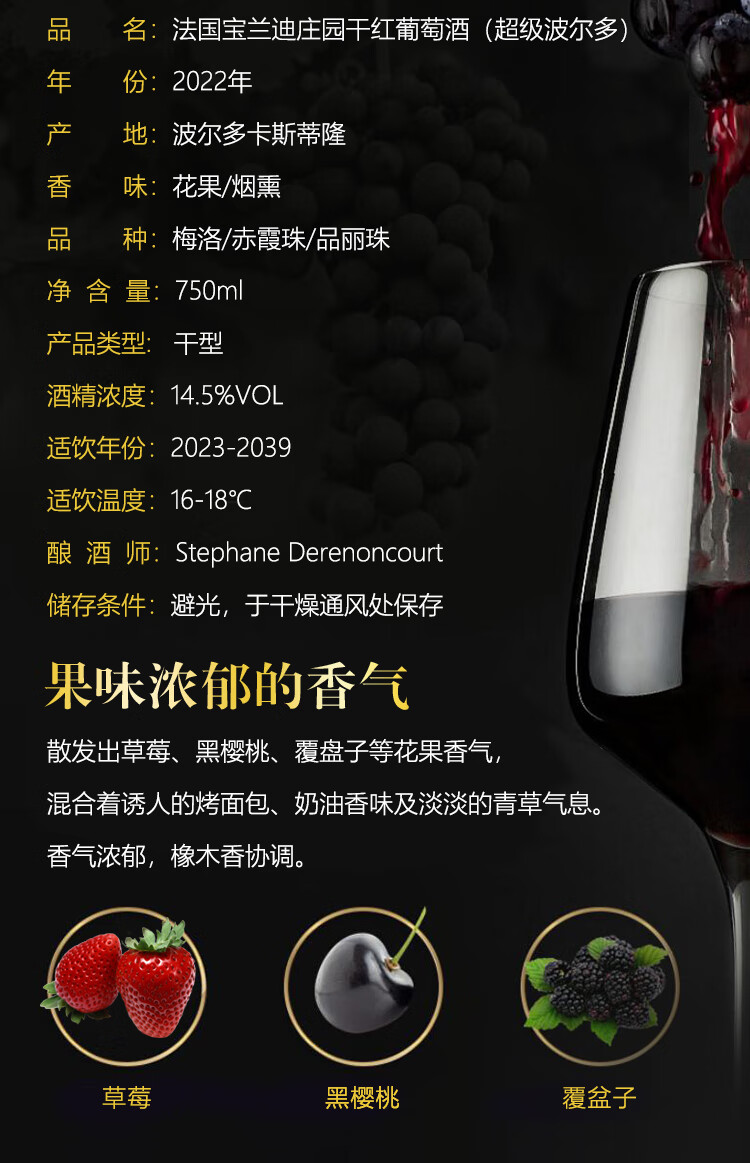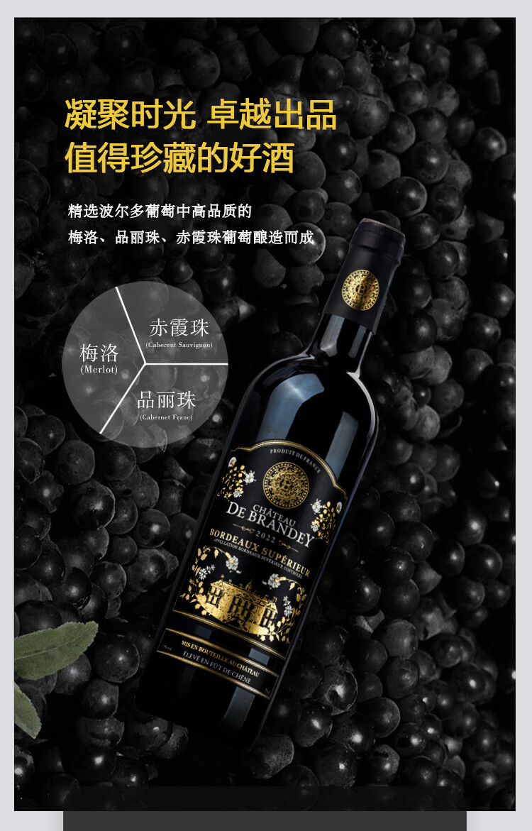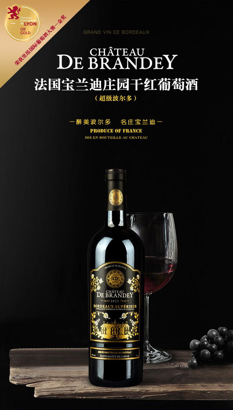 商品名称: CHATEAU LOUIS【宝兰迪庄园】2022年份超波干红葡萄酒 法国波尔多原瓶原装进口 750ml单支装红酒