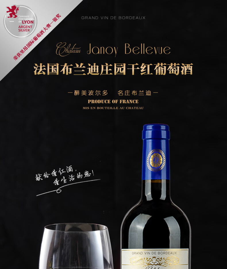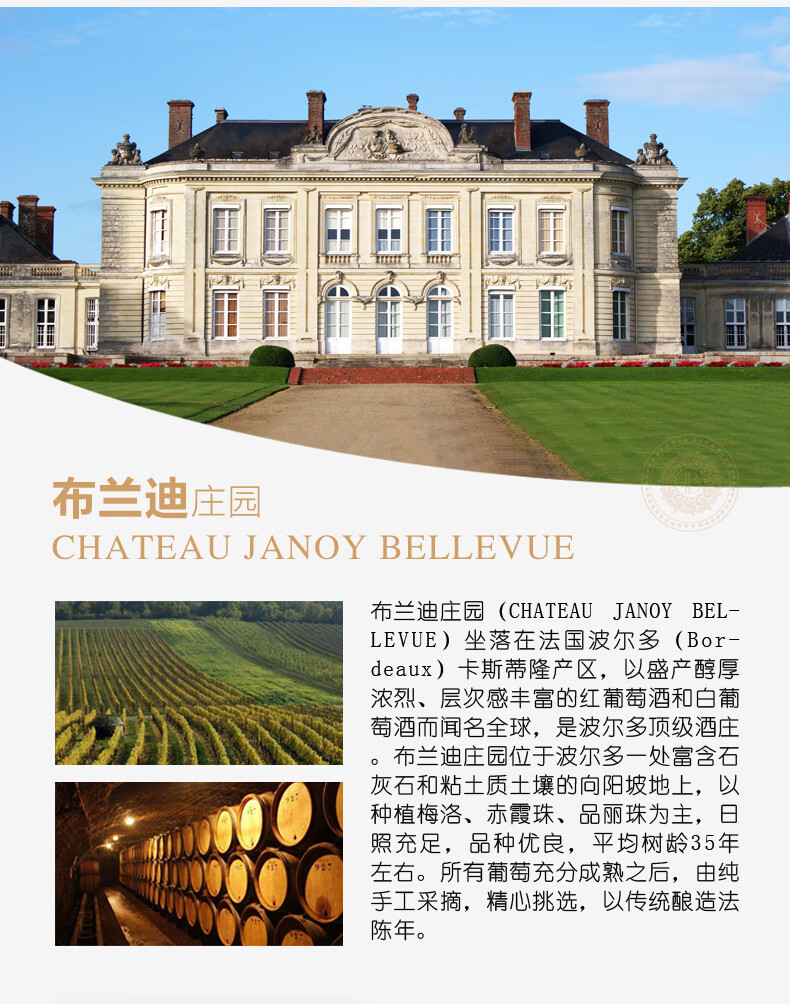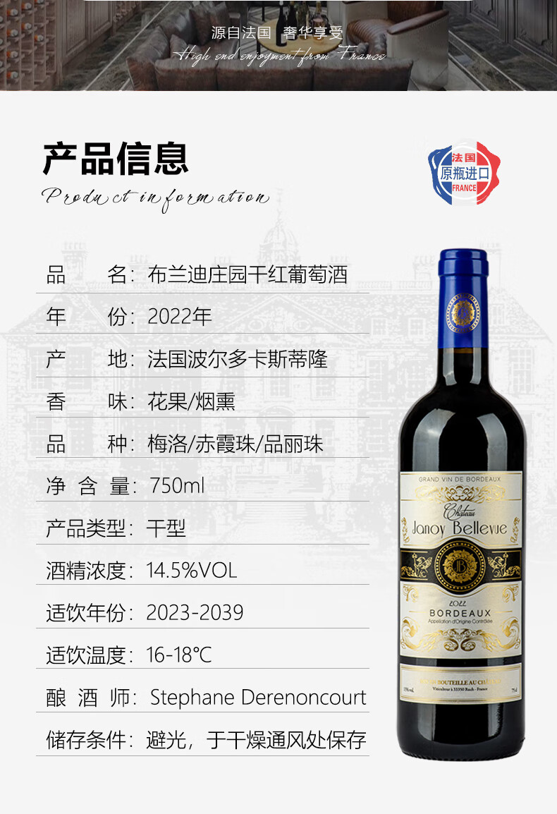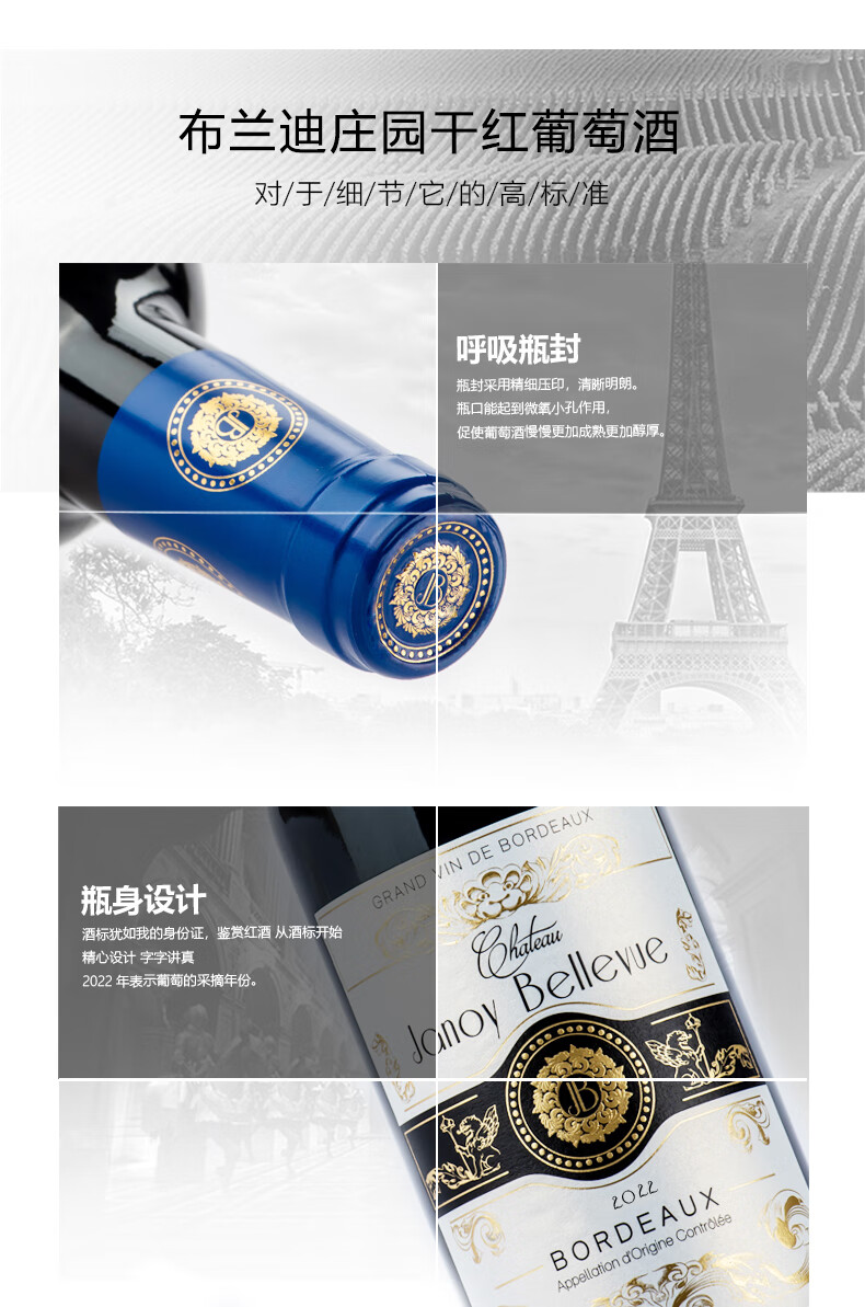 商品名称: 路易城堡(CHATEAU LOUIS)【法国进口红酒】2022布兰迪庄园干红葡萄酒波尔多卡斯蒂隆 750ml 单支装红酒
